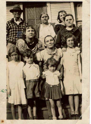 Left Picture:Cottril circa 1934 : David Martin Cottrill, Pearl Eleanor Snyder Cottrill, Pep, Elinor Cottrill, Verna Cottrill, Marion Cottrill(center), Betty, Sis, Sammie, Adeline Peters