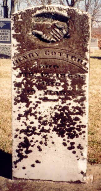 Right Picture: Our earliest Cottrill headstone photo: Henry Cottrill 1799-1869,Temple Cemetery, Meigs Co., OH, great grandfather of David Martin Cottrill.